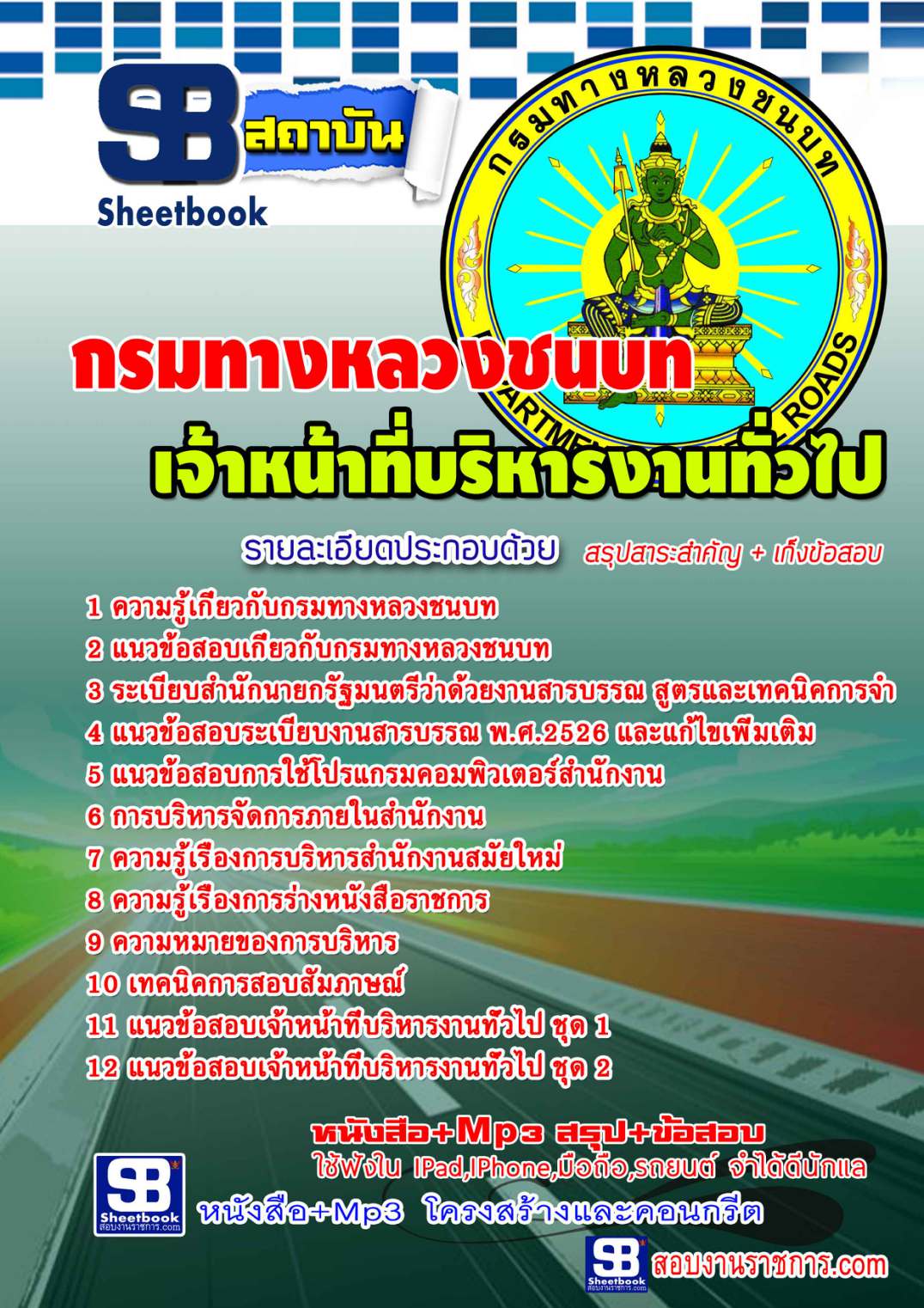 #แนวข้อสอบเจ้าหน้าที่บริหารงานทั่วไป กรมทางหลวงชนบท1 ความรู้เกี่ยวกับกรมทางหลวงชนบท2 แนวข้อสอบเกี่ยวกับกรมทางหลวงชนบท3 ระเบียบสำนักนายกรัฐมนตรีว่าด้วยงานสารบรรณ สูตรและเทคนิคการจำ4 แนวข้อสอบระเบียบงานสารบรรณ พ.ศ.2526 และแก้ไขเพิ่มเติม5 แนวข้อสอบการใช้โปรแกรมคอมพิวเตอร์สำนักงาน6 การบริหารจัดการภายในสำนักงาน7 ความรู้เรื่องการบริหารสำนักงานสมัยใหม่8 ความรู้เรื่องการร่างหนังสือราชการ9 ความหมายของการบริหาร10 เทคนิคการสอบสัมภาษณ์11 แนวข้อสอบเจ้าหน้าที่บริหารงานทั่วไป ชุด 112 แนวข้อสอบเจ้าหน้าที่บริหารงานทั่วไป ชุด 2mp3 การสอบสัมภาษณ์