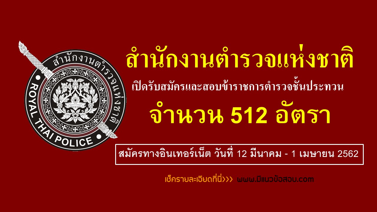 สำนักงานตำรวจแห่งชาติ เปิดสอบตำรวจชั้นประทวน 521 อัตรา วันที่ 12 มีนาคม - 1 เมษายน 2562