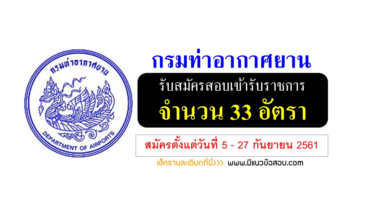 ประกาศ กรมท่าอากาศยาน เรื่อง รับสมัครบุคคลเพื่อเลือกสรรและจัดจ้างเป็นพนักงานราชการทั่วไปตำแหน่งต่าง ๆ ปฏิบัติงานที่ส่วนกลาง และท่าอากาศยาน จำนวน 33 อัตรา สมัครตั้งแต่วันที่ 5 - 27 กันยายน 25611.ตำแหน่งเจ้าหน้าที่ขนส่ง(ด้านประชาสัมพันธ์) 2 อัตราอัตราเงินเดือน 13,800 บาทคุณสมบัติเฉพาะตำแหน่ง : ปวช.ทุกสาขา , ปวส.ทุกสาขา2.ตำแหน่งนายช่างโยธา 10 อัตราอัตราเงินเดือน 13,800 บาทคุณสมบัติเฉพาะตำแหน่ง : ได้รับวุฒิปวส.ทางสาขาช่างโยธา สาขาวิชาก่อสร้าง สาขาเทคนิควิศวกรรมโยธา สาขาเทคนิคการจัดการงานก่อสร้าง สาขาวิชาการก่อสร้าง สาขาวิชาสำรวจ3.ตำแหน่งนายช่างเครื่องกล 12 อัตราอัตราเงินเดือน 13,800 บาทคุณสมบัติเฉพาะตำแหน่ง : ได้รับวุฒิประกาศนียบัตรวิชาชีพชั้นสูง (ปวส.) ทางสาขาวิชาเครื่องกล สาขาวิชาช่างกลโรงงาน สาขาวิชาเทคนิคโลหะ สาขาวิชาเขียนแบบเครื่องกล4.ตำแหน่งเจ้าหน้าที่ตรวจอาวุธและวัตถุอันตราย 5 อัตราอัตราเงินเดือน 13,800 บาทคุณสมบัติเฉพาะตำแหน่ง : ปวช.ทุกสาขา หรือ ปวส.ทุกสาขา5.ตำแหน่งกู้ภัยและดับเพลิง 3 อัตราอัตราเงินเดือน 13,800 บาทคุณสมบัติเฉพาะตำแหน่ง : ปวช.ทุกสาขา(แบบมีเงื่อนไขดูในไฟล์แนบรับสมัคร) หรือ ปวส.ทุกสาขา6.ตำแหน่งผู้ดูแลสนามบิน 1 อัตราอัตราเงินเดือน 11,280 บาทคุณสมบัติเฉพาะตำแหน่ง : ได้รับวุฒิการศึกษาไม่ต่ำกว่ามัธยมศึกษาปีที่ 3การรับสมัครสอบกรมท่าอากาศยานผู้ประสงค์จะสมัครสอบ สามารถสมัครได้ทางอินเทอร์เน็ต ตั้งแต่วันที่ 5 - 27 กันยายน 2561 ตลอด 24 ชั่วโมง ไม่เว้นวันหยุดราชการ ที่เว็บไซต์ https://airports.thaijobjob.com/เอกสารแนบ : กรมท่าอากาศยาน -----------------------------------------------------------------------------------