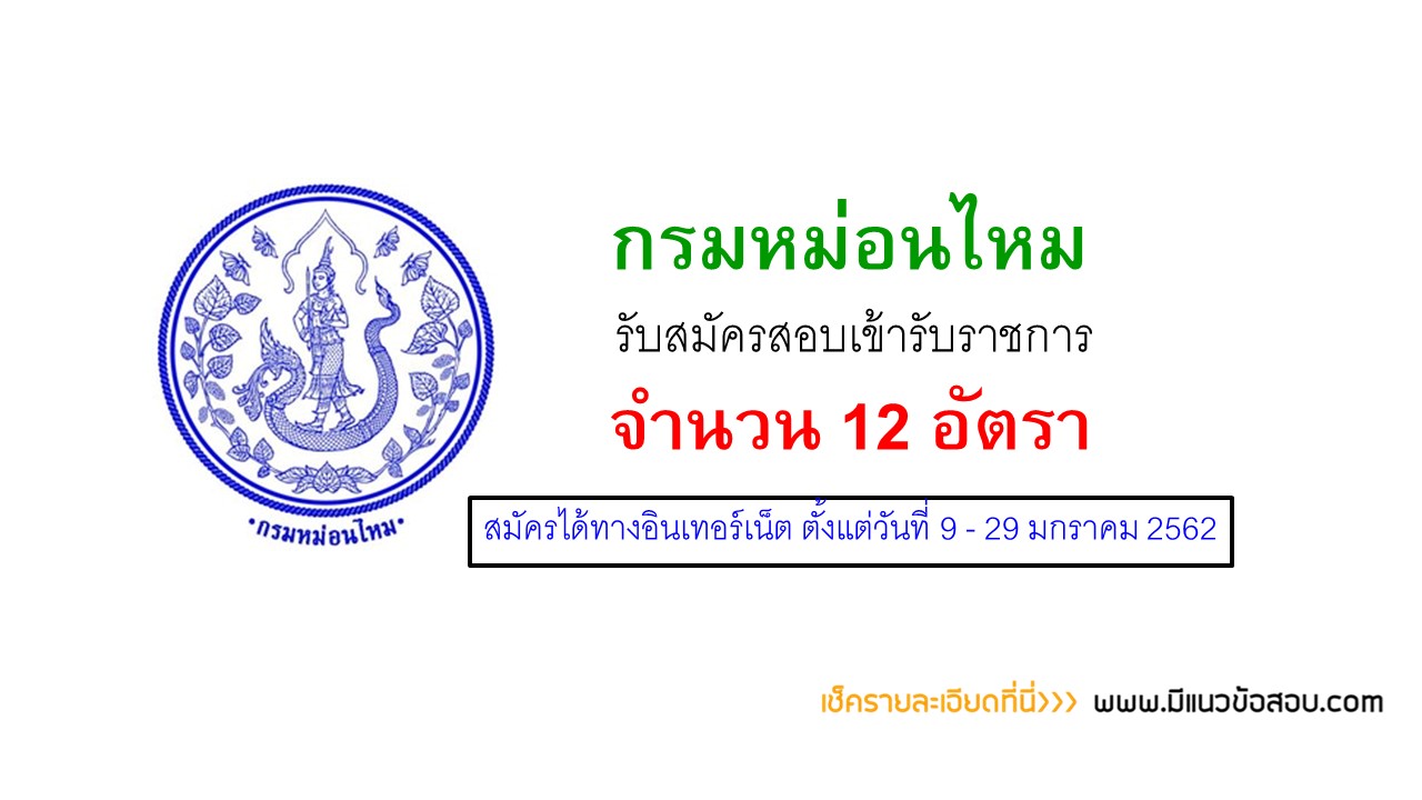 กรมหม่อนไหม รับสมัครสอบเข้ารับราชการ 12 อัตราวันที่ 9 - 29 มกราคม 2562