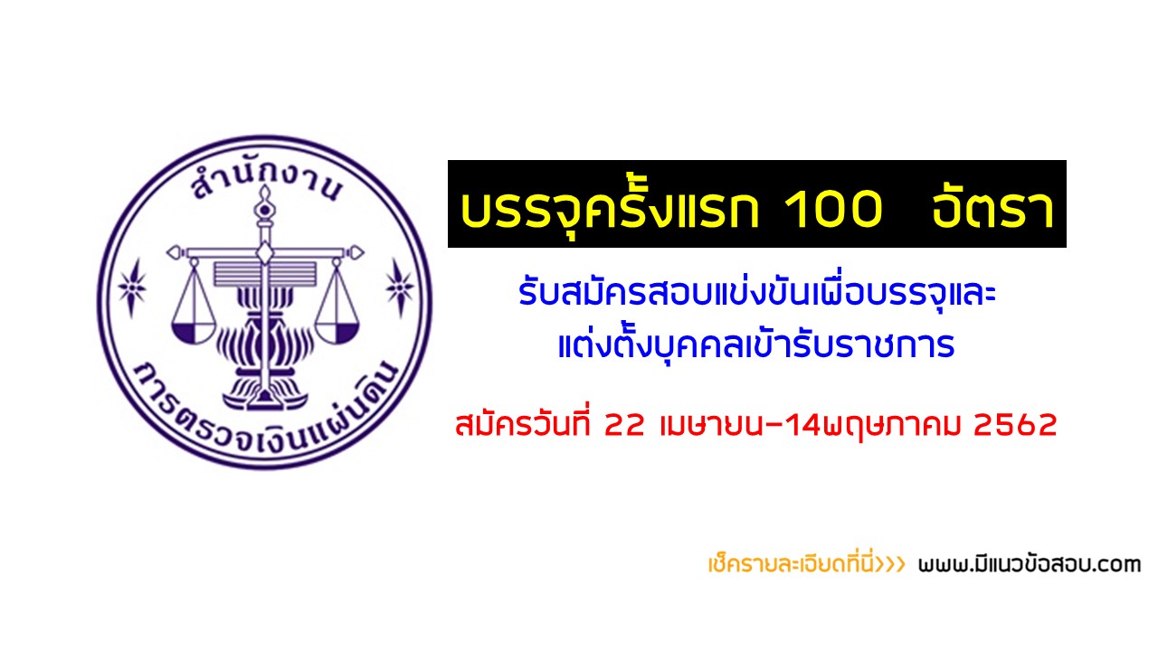 สำนักงานการตรวจเงินแผ่นดิน รับสมัครสอบบรรจุบุคคลเข้ารับราชการ 100 อัตรา วันที่ 22 เม.ย.-14 พ.ค. 2562