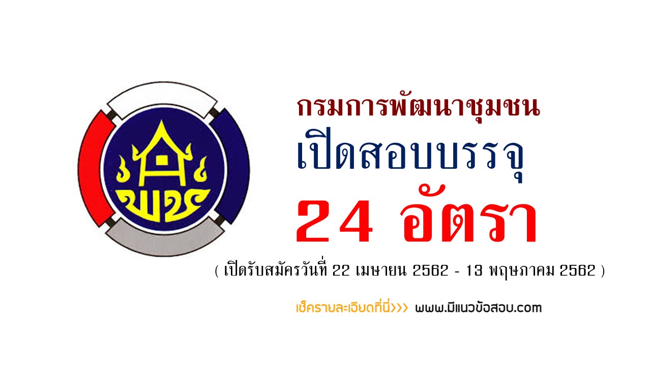 กรมการพัฒนาชุมชน รับสมัครสอบบรรจุเข้ารับราชการ 24 อัตรา วันที่ 22 เม.ย. - 13 พ.ค. 2562