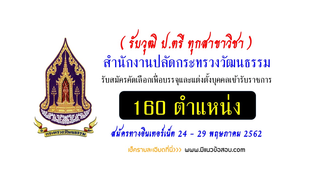 สำนักงานปลัดกระทรวงวัฒนธรรม รับสมัครสอบเข้ารับราชการ จำนวน 160 ตำแหน่ง วันที่ 24 - 29 พฤษภาคม 2562