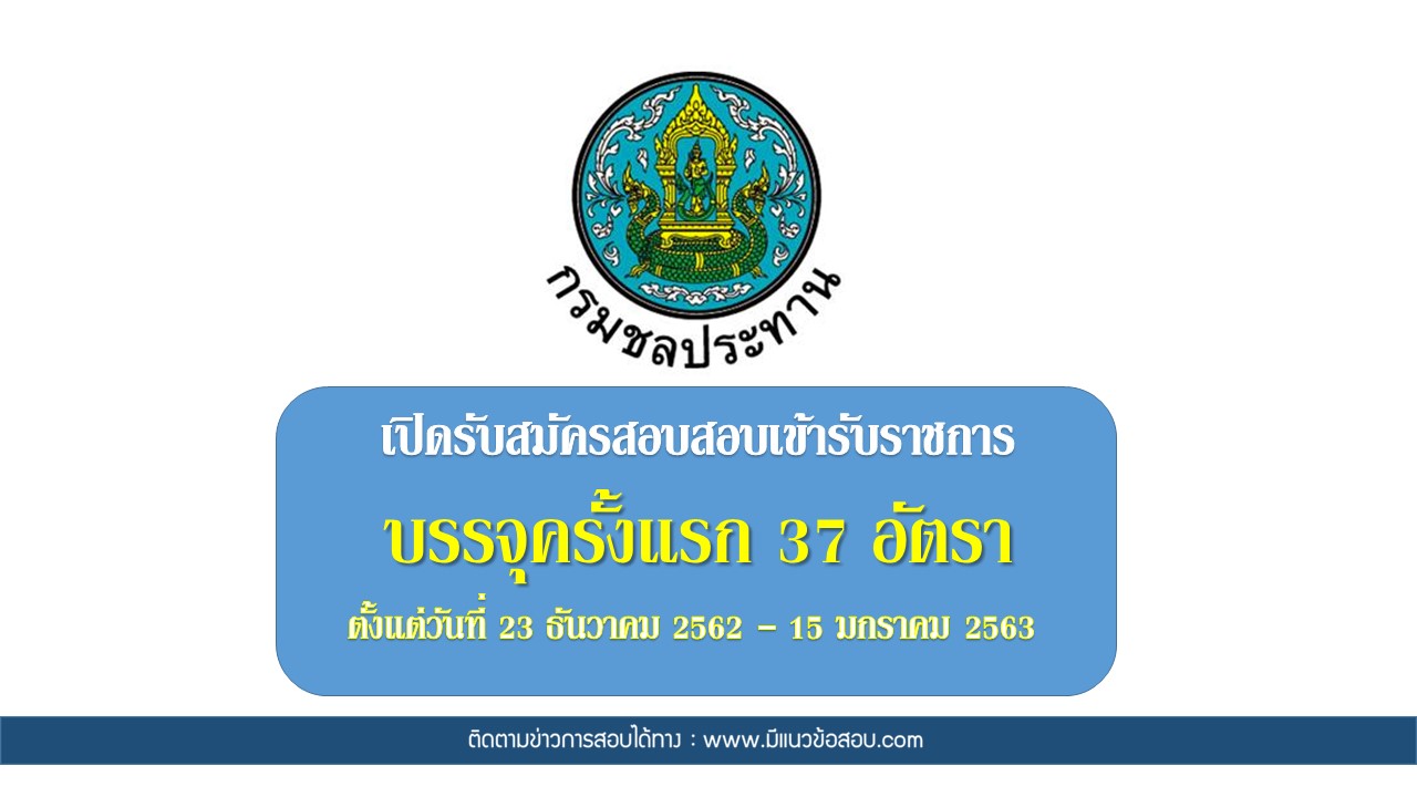 กรมชลประทาน รับสมัครสอบแข่งขันเพื่อบรรจุและแต่งตั้งบุคคลเข้ารับราชการ 37 อัตรา ตั้งแต่วันที่ 23 ธันวาคม 2562 - 15 มกราคม 2563 ตำแหน่งที่เปิดรับสมัคร