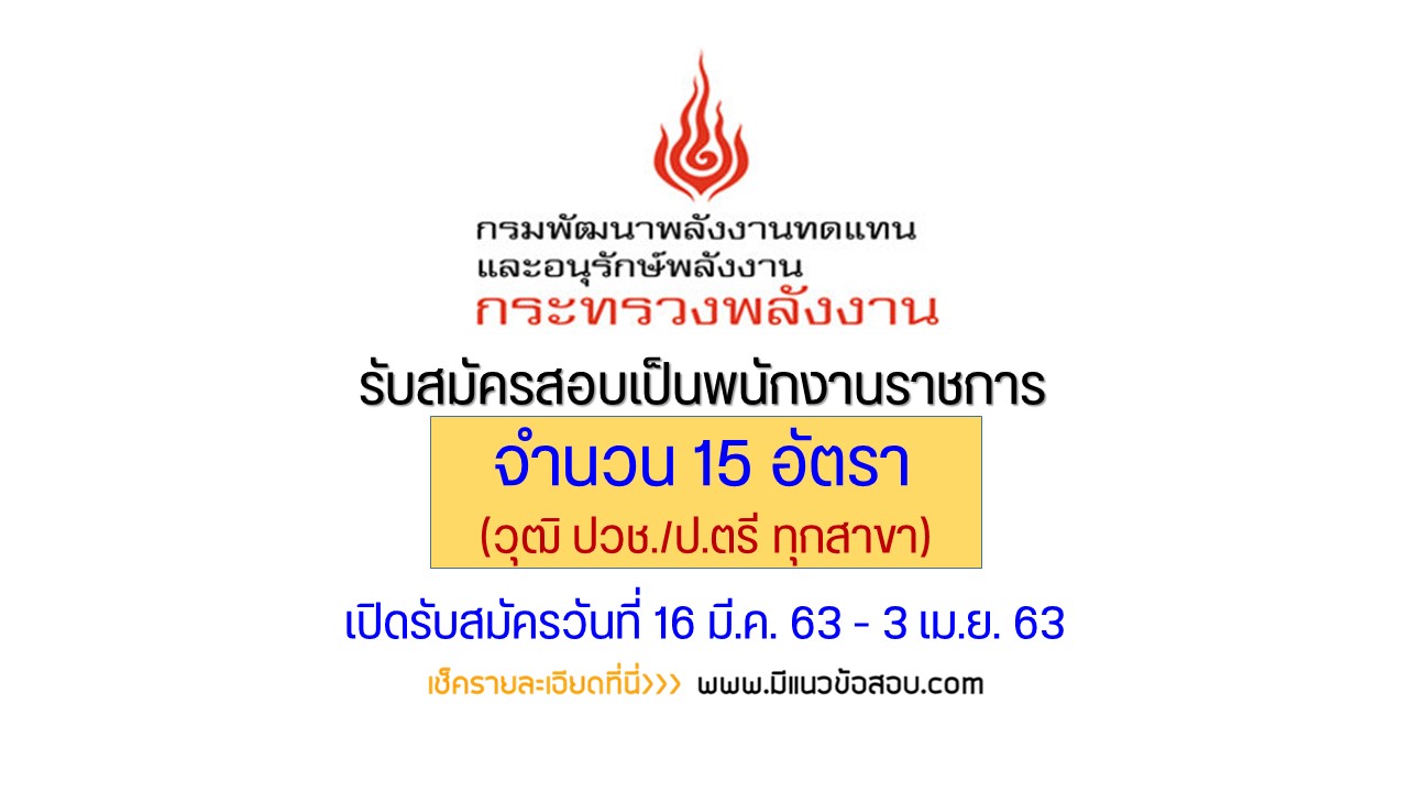(รับสมัครสอบ) กรมพัฒนาพลังงานทดแทนและอนุรักษ์พลังงาน 15 อัตรา วันที่16 มี.ค. 63 - 3 เม.ย. 63