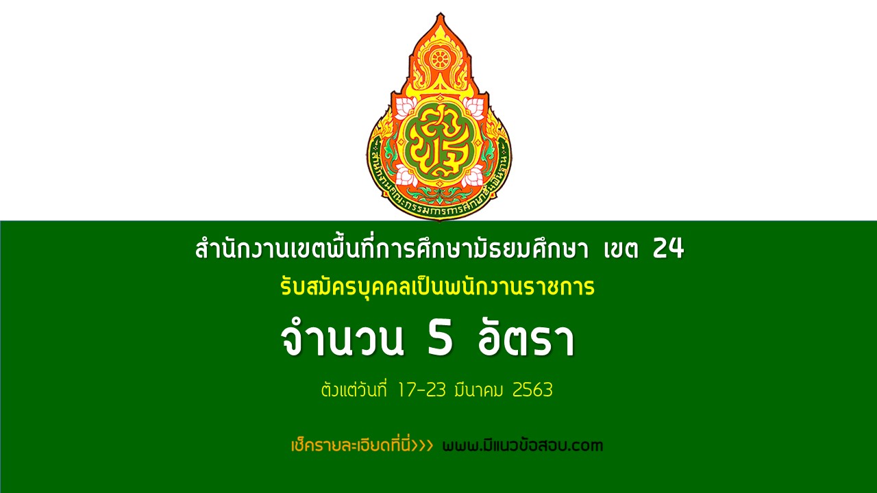 (สพม.24) รับสมัครสอบเป็นพนักงานราชการ 5 อัตรา ตำแหน่งครูผู้สอน วันที่ 17-23 มีนาคม 2563