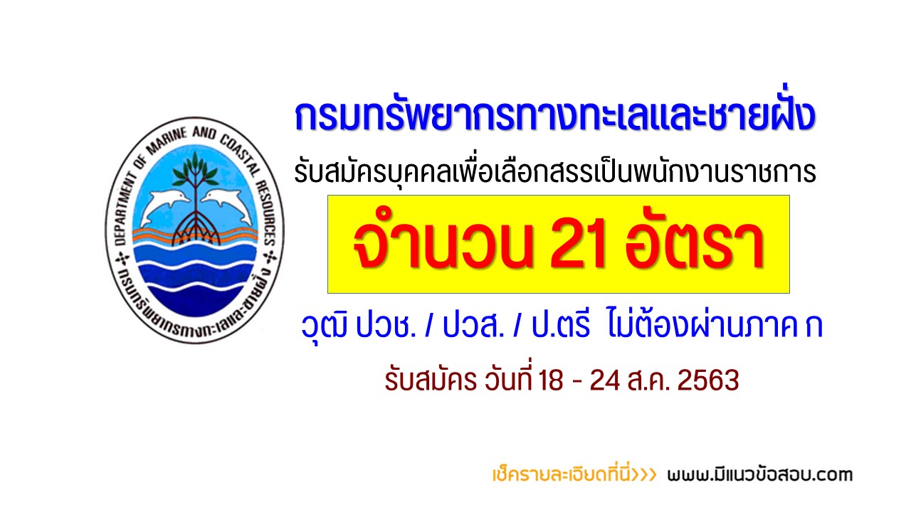 กรมทรัพยากรทางทะเลและชายฝั่ง รับสมัครสอบเป็นพนักงานราชการ 21 อัตรา วันที่ 18-24 ส.ค. 2563