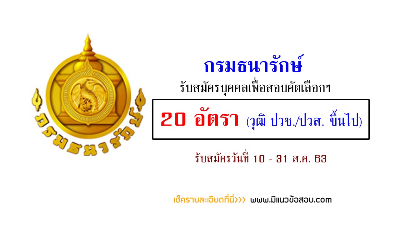 (วุฒิ ปวช./ปวส. ขึ้นไป) กรมธนารักษ์ รับสมัครบุคคลเพื่อสอบคัดเลือกฯ 20 อัตรา สมัคร10-31ส.ค.63