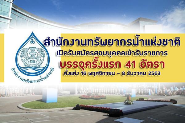 สำนักงานทรัพยากรน้ำแห่งชาติ รับสมัครสอบแข่งขันเพื่อบรรจุและแต่งตั้งบุคคลเข้ารับราชการ บรรจุครั้งแรก 41 อัตรา รับสมัครสมัครตั้งแต่ง 16 พฤศจิกายน - 8 ธันวาคม 2563