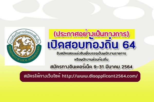 เปิดสอบท้องถิ่น 64 (อย่างเป็นทางการแล้ว) ตั้งแต่วันที่ 9 มีนาคม 2564 - 31 มีนาคม 2564