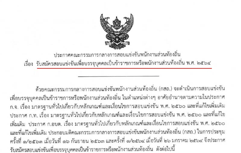 ด้วยคณะกรรมการกลางการสอบแข่งขันพนักงานส่วนท้องถิ่น(กสถ.) จะเปิดดำเนินการสอบแข่งขันเพื่อบรรจุเป็นข้าราชการหรือพนักงานส่วนท้องถิ่น ในตำแหน่งต่างๆ ประจำปี 2564