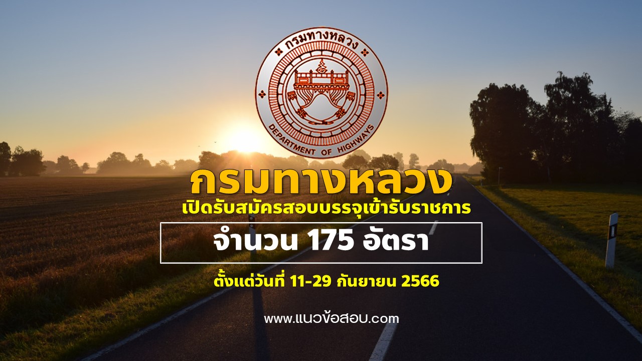 กรมทางหลวง เปิดรับสมัครสอบบรรจุเข้ารับราชการ 175 อัตรา รับสมัครทางอินเทอร์เน็ต ตั้งแต่วันที่ 11-29 กันยายน 2566