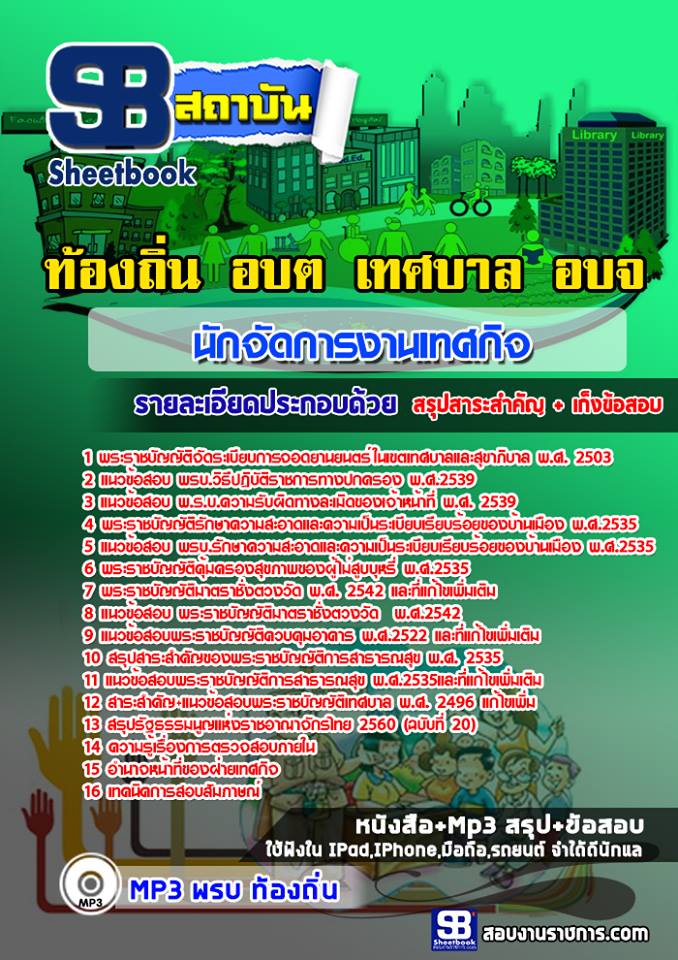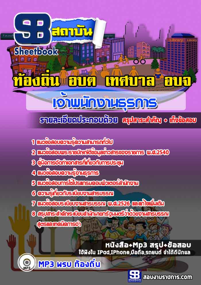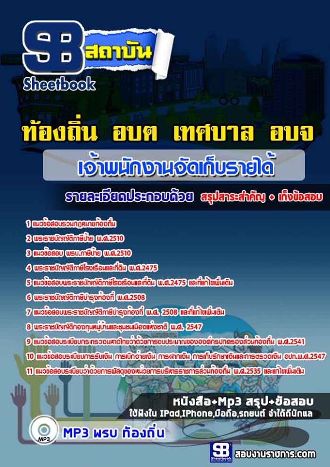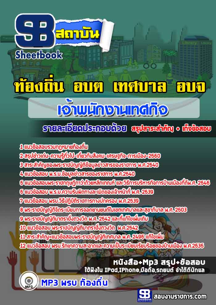 ++แนวข้อสอบเจ้าพนักงานส่งเสริมการท่องเที่ยว ท้องถิ่น อบต เทศบาล อบจ1 พระราชบัญญัติข้อมูลข่าวสารของราชการ พศ.25402 แนวข้อสอบพระราชบัญญัติข้อมูลข่าวสารของราชการ พ.ศ.25403 แผนพัฒนาการท่องเที่ยวแห่งชาติ-ฉบับที่-2 พ.ศ. 2560 – 25644 ความรู้เกี่ยวกับแผนกลยุทธและแผนยุทธศาสตร์5 แนวข้อสอบ พรบ.ธุรกิจนำเที่ยวและมัคคุเทศก์ พ.ศ. 25516 แนวข้อสอบ พรบ.นโยบายการท่องเที่ยวแห่งชาติ พ.ศ. 25517 ถาม - ตอบ ความรู้ด้านอุตสาหกรรมท่องเที่ยว8 แนวข้อสอบความรู้เรื่องการท่องเที่ยว9 เทคนิคการสอบสัมภาษณ์MP3 พรบ ท้องถิ่น