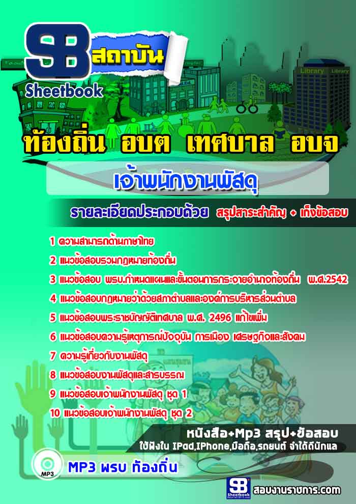 ++แนวข้อสอบนักผังเมืองปฎิบัติการ ท้องถิ่น อปท. อบจ. อบต. เทศบาลรายละเอียดวิชาที่ออกสอบประกอบด้วย1 พระราชบัญญัติผังเมือง พ.ศ.25182 แนวข้อสอบพระราชบัญญัติการผังเมือง พ.ศ. 25183 พระราชบัญญัติการผังเมือง (ฉบับที่ 4) พ.ศ. 25584 พระราชบัญญัติควบคุมอาคาร พ.ศ.25505 แนวข้อสอบพระราชบัญญัติควบคุมอาคาร พ.ศ.2522 และที่แก้ไขเพิ่มเติม6 ประวัติความเป็นมาของการผังเมืองของประเทศไทย7 ความรู้เกี่ยวกับผังเมืองและการวางผังเมือง8 แนวข้อสอบความรู้เกี่ยวกับการวางผังเมือง9 แนวทางการวางผังเมือง ท้องถิ่น10 แนวข้อสอบผังเมืองปฎิบัตรการMP3 พรบ ท้องถิ่น