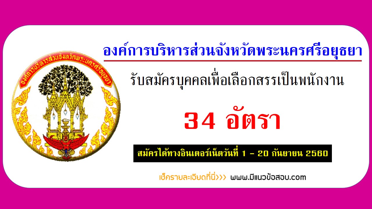 แชร์ด่วน!! องค์การบริหารส่วนจังหวัดพระนครศรีอยุธยา ประกาศ รับสมัครบุคคลเพื่อเลือกสรรเป็นพนักงานจ้าง ครั้งที่ 2/2560