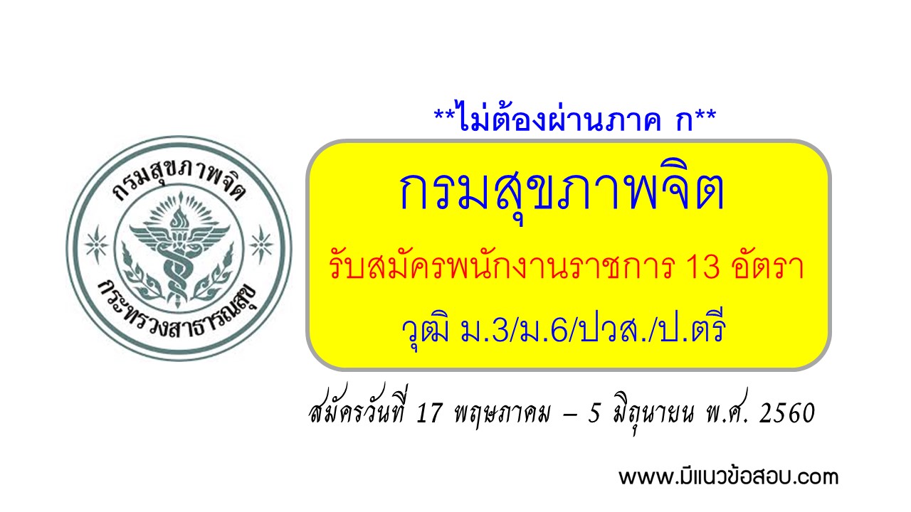 ด้วย กรมสุขภาพจิต รับสมัครบุคคลเพื่อเลือกสรรเป็นพนักงานราชการทั่วไป 13 อัตรา