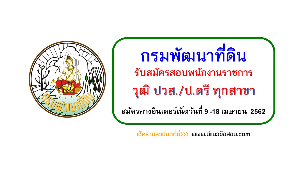 กรมพัฒนาที่ดิน รับสมัครสอบพนักงานราชการ จำนวน 7 อัตรา วันที่ 9 -18 เมษายน 2562