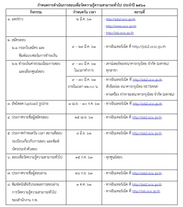 ประกาศ สำนักงาน ก.พ. เรื่อง รับสมัครสอบเพื่อวัดความรู้ความสามารถทั่วไป ประจำปี 2561 ( รายละเอียด )